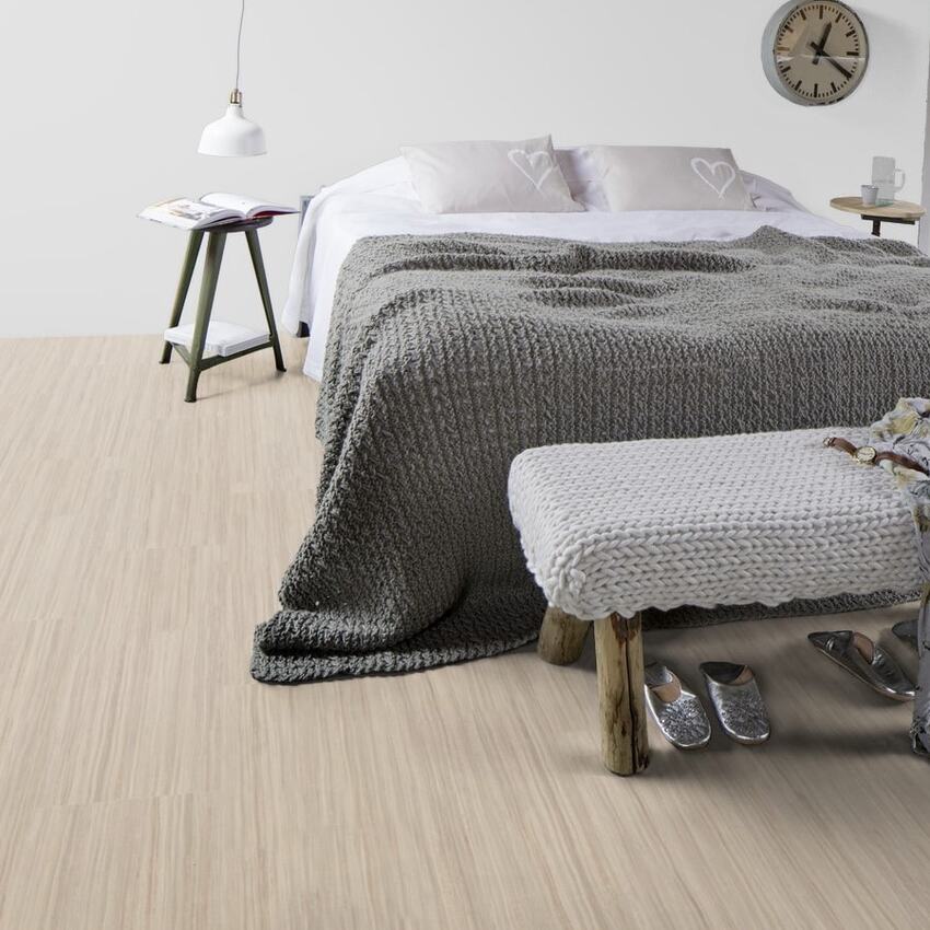 Для узких комнат следует выбирать половицы с вытянутым рисунком, которые помогут раздвинуть границы стен. Темные цвета, сочетающиеся с белым глянцем, будут смотреться интересно и необычно, и добавят спальне воздуха.
