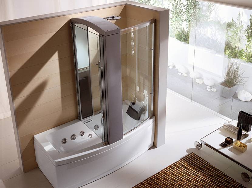 Если недостаточно пространства для душевого уголка и ванны, можно приобрести ванную, совмещённую с душевой кабиной.