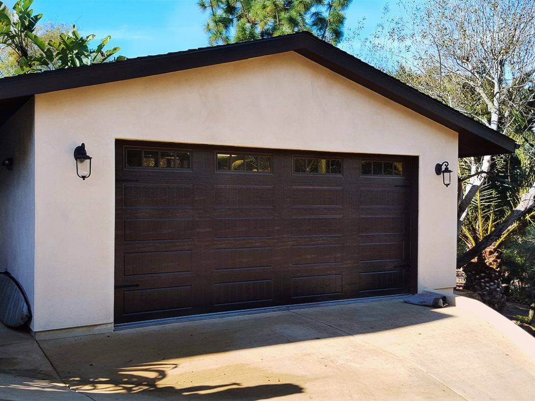 Это бюджетная версия отделки гаражной постройки своими руками, которая предложена на фото. Как правило, оштукатуривают строения, созданные из бетонных блоков, газоблока, кирпича. После того, как стены оштукатурены, дожидаются их полного высыхания и приступают к декоративной покраске. Такой вариант подходит для заделки щелей, неровностей, придания стенам более эстетического внешнего вида. Плюс к этому, оштукатуренные поверхности не воспламеняются, защищают строение от случайных повреждений и температурно-влажностных перепадов.
