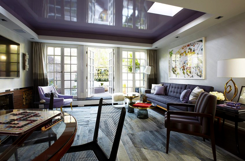 - не менее привлекательны пастельные потолки с жемчужным блеском. Такой вариант подходит и для классического стиля, и для многих современных решений;