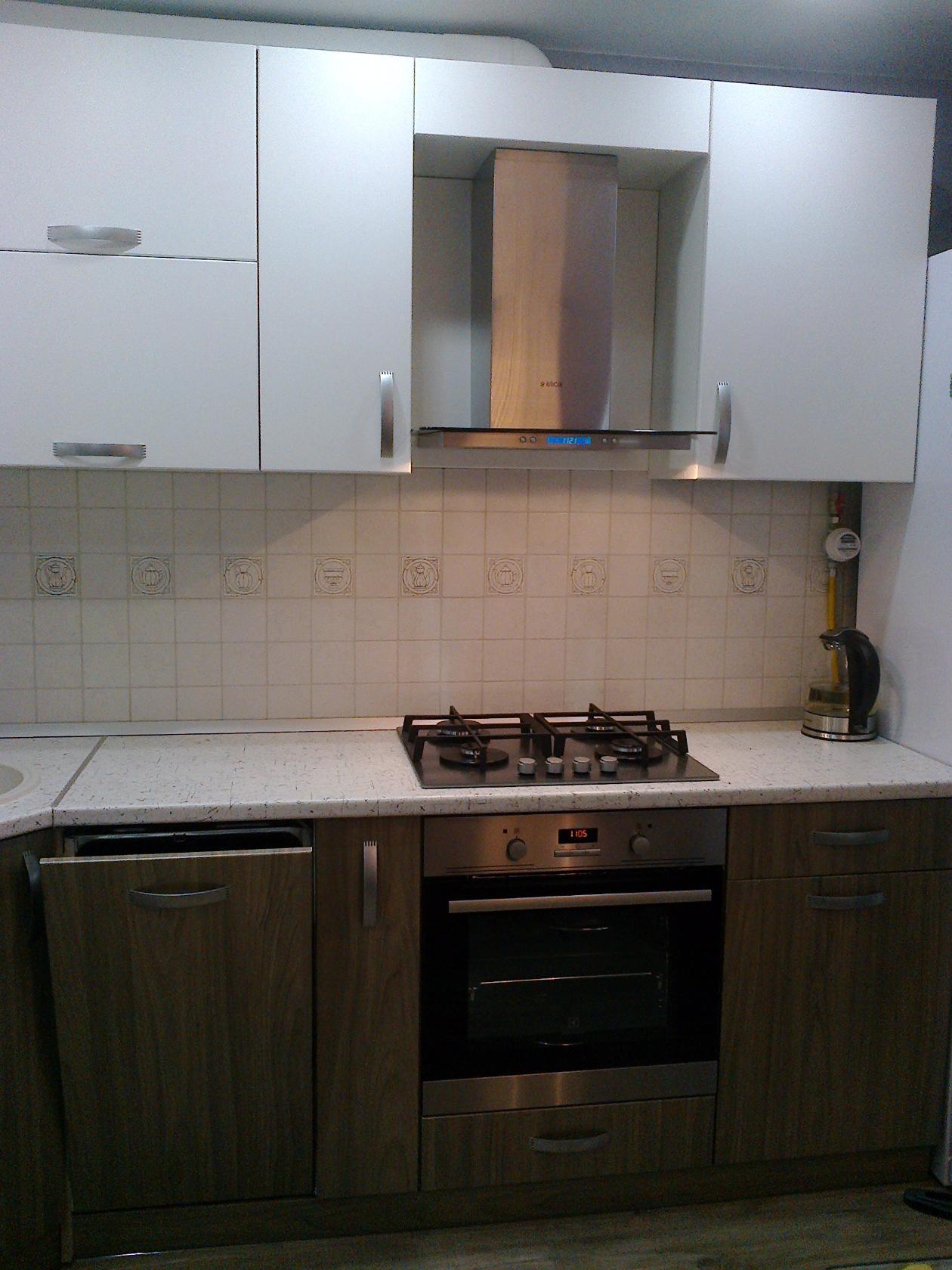 Если кухня двухцветная, то фартук следует выполнить в промежуточном оттенке между полом и стенами. То есть его нужно делать светлее пола, но темнее стен.