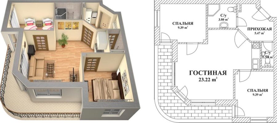 Для типовых хрущевок и однокомнатных квартир характерны маленькие прихожие, которые зачастую имеют прямоугольную форму.