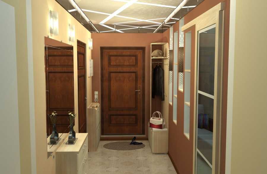 Для узкого коридора уместна установка зеркал, шкафа-купе. Подойдет использование разных материалов для напольного покрытия. Это создаст ощущение гостеприимства. Приветствуется применение встроенной мебели и антресолей, которые позволяют сберечь больше места. Приятным завершением могут служить ключница и компактная подставка для зонтов.