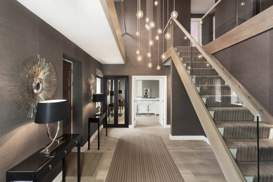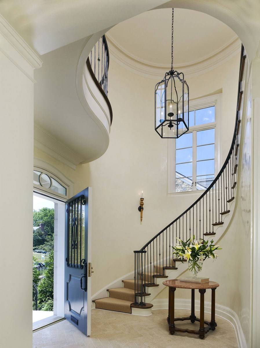 Теплое, многоуровневое освещение неизменно присутствует в каждой классической прихожей. Приветствуются и массивные люстры, и точечные светильники.
