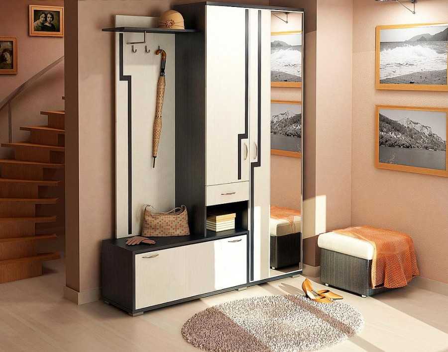 Так как зачастую прихожей отведено не так много места, как хотелось бы, мебель здесь обычно выполняет сразу несколько функций. Пуфик служит хранилищем обуви или специальных средств для ее чистки, а шкаф вмещает в себя и одежду, и пару лыж, и детские санки. Традиционными предметами мебели для прихожей являются: