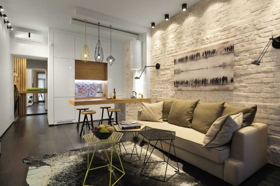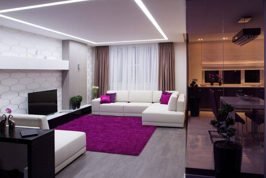 А если гостиная совмещена с кухней или спальней, то это особенно важно. Все зоны (для отдыха, приема пищи, сна, работы) нужно продумывать, исходя из необходимости и количества членов семьи