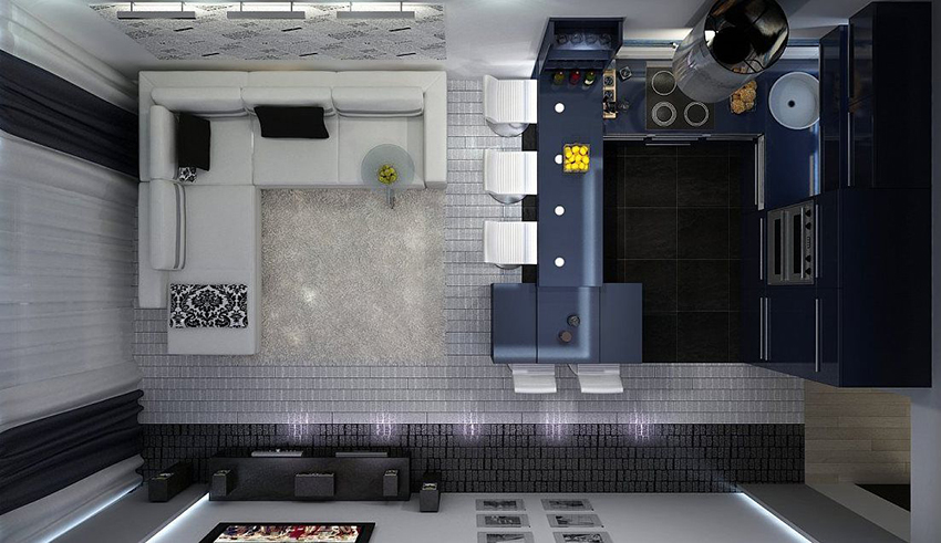 Как зонировать комнаты: фото интерьеров кухни-гостиной 20 кв. м