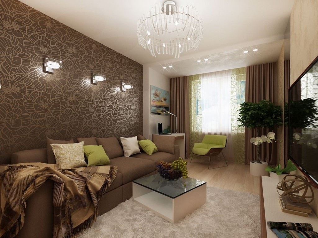 Для начала заметим, что зонирование бывает как чисто визуальным, так и функциональным. В первом случае речь идет о комбинации цветов пола и стен – например, сделать гостиную однотонной, а стены кухни оклеить обоями с рисунком. Для декорирования зоны за телевизором лучше использовать панно из фотообоев (или что-то подобное).