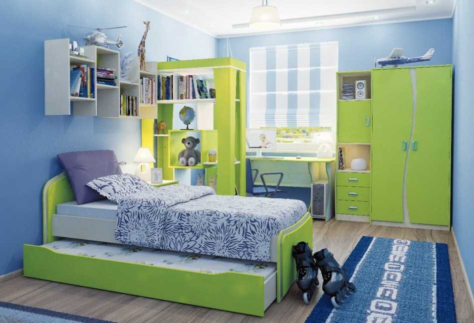 Традиционными для мальчика считаются синие, голубые оттенки. Удачное сочетание основного тона с другими цветами позволит создать гармоничную атмосферу. Детская для мальчика чаще оформляется с использованием тематического дизайна: космос, море, супергерои, авиация, роботы и др.