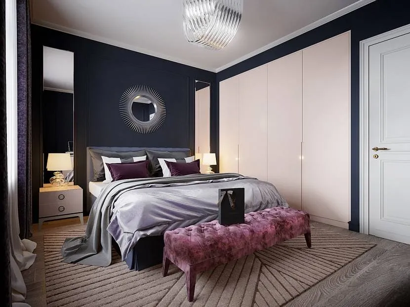 В спальне можно использовать комбинацию разных цветов и фактур при отделке стен. Допустимо использовать один тон или фактуру для формирования акцентной стены, например, у изголовья кровати, в то время как остальные стены могут быть оформлены в других тонах.