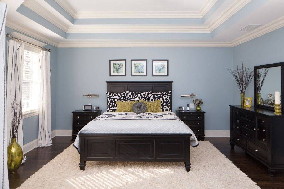 Отделку помещения начинают с потолка. Еще недавно, потолок спальни был выровнен и покрашен белой краской. Такие потолки нам привычны и просты в уходе. Отделать потолок, в таком случае, легко своими руками. Но идеи дизайна спальни 12 кв. метров можно черпать из множества источников и ограничиваться простым окрашивание не стоит.