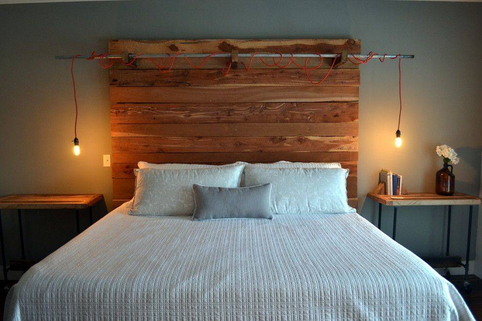 Если на этапе отделки акцентная стена спальни у изголовья кровати не выделена, та сейчас настала пора это сделать. Стиль помещения можно подчеркнуть гипсовыми предметами декора, инсталляциями, необычными конструкциями, картинами.