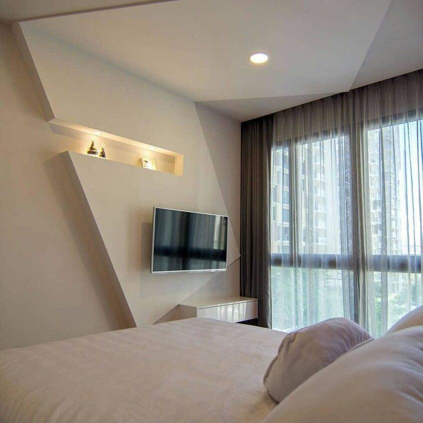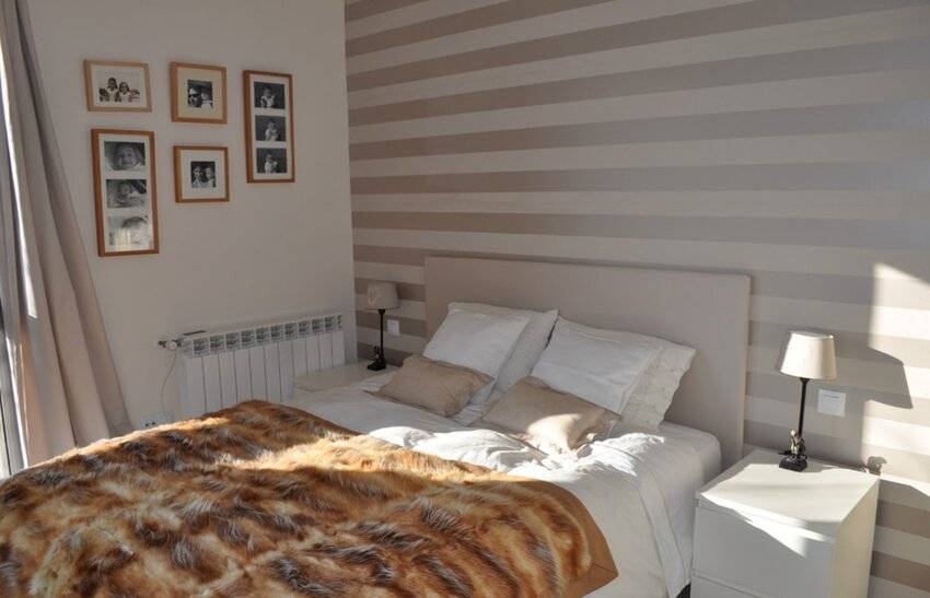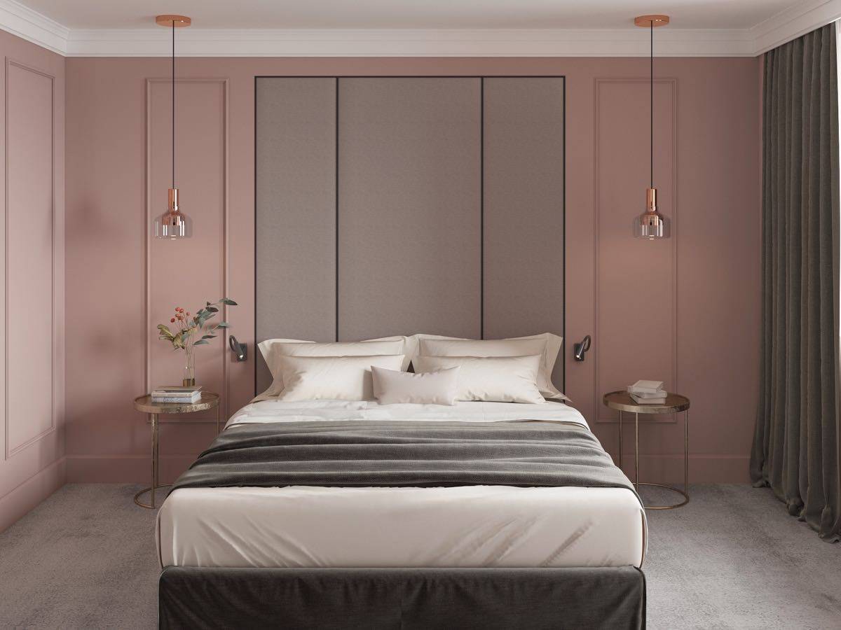 При ремонте особое внимание уделяется отделке стены в соответствии с изголовьем кровати. Обычно это пространство не заполняют шкафами и полками, но оставляют свободное место для мебели и светильников