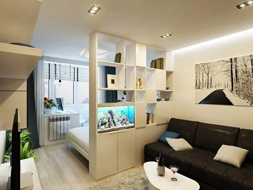 Зонирование с помощью стеллажаИсточник dekoriko.ru