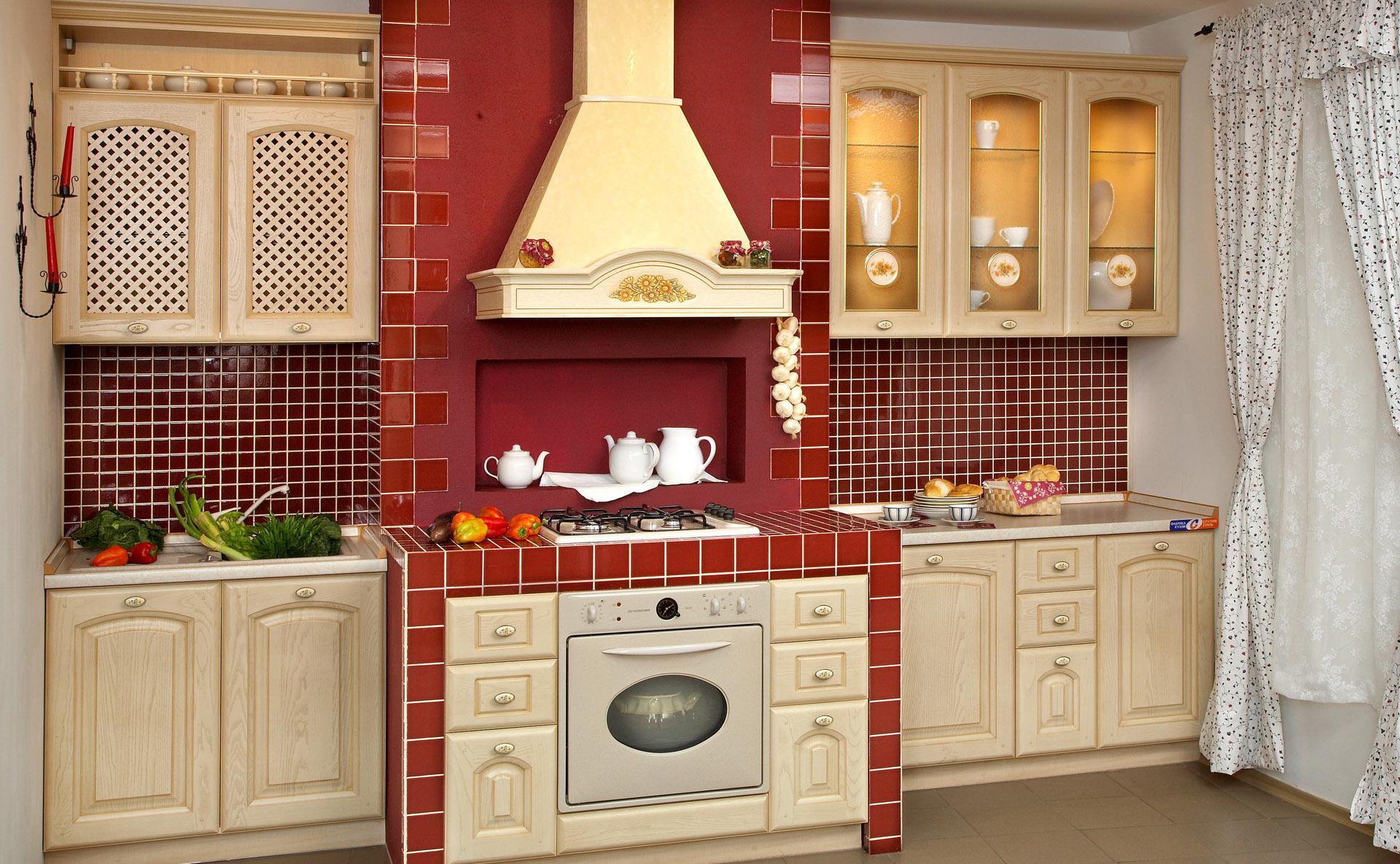 - добавлять яркие акценты – бордовые, красные, фиолетовые элементы в отделке гарнитура, посуде, аксессуарах;