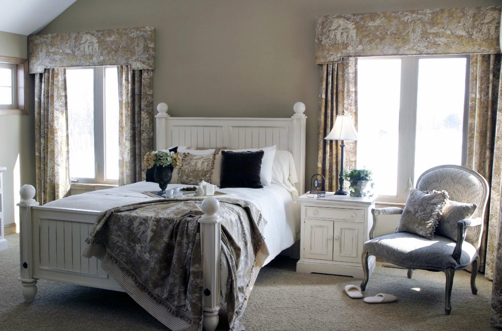 Бежевый, коричневый и белый цвета в интерьере классической спальни