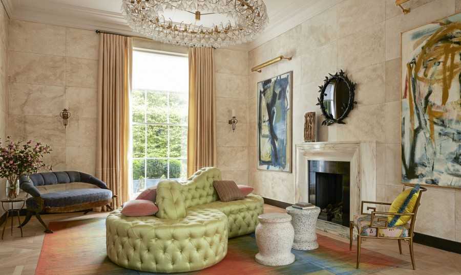 Ничто так не сравнится с эффектными акцентами, как лимонно-зеленый диван и шторы, которые придают дизайну сияние.