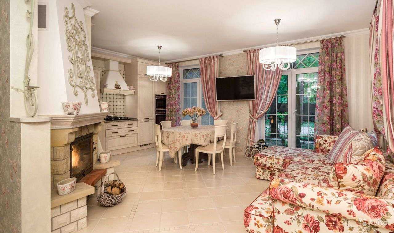 Подойдет для романтических, консервативных натур. Гостиная такого типа обычно выстраивается в мягких, нежных тонах – розовых, голубых, кремово-зеленых, бежевых в неизбежном сочетании с растительными принтами.
