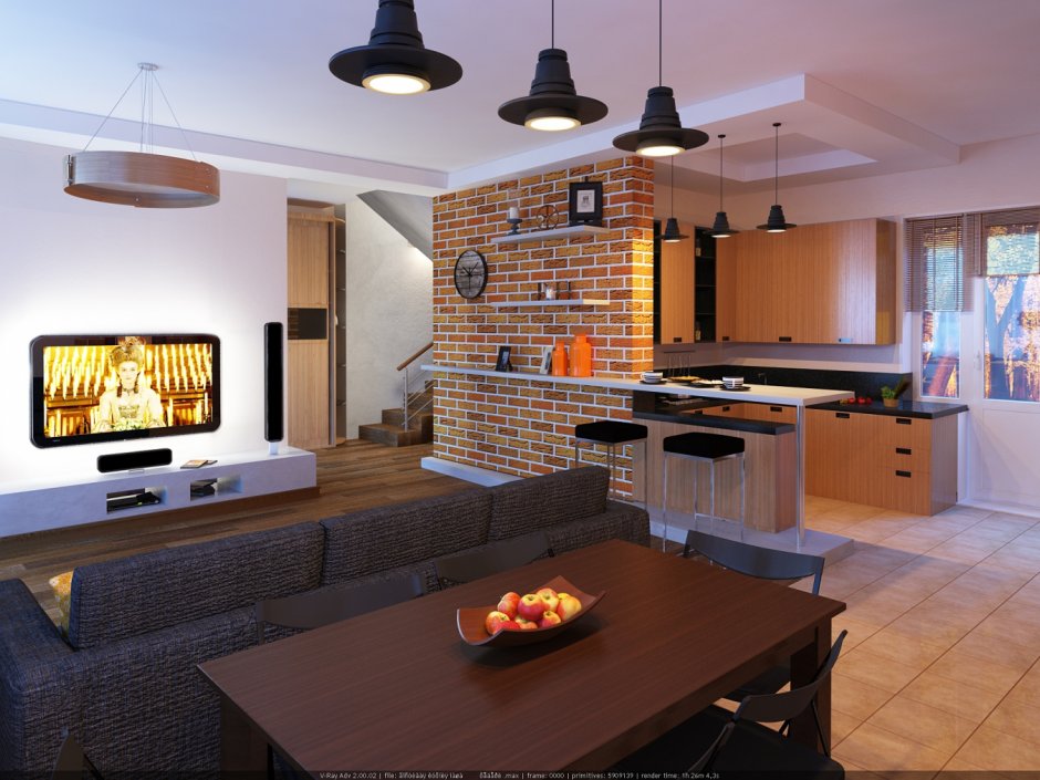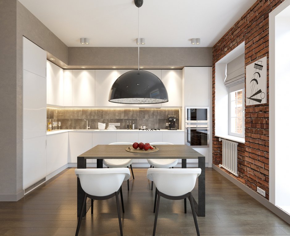 - Освещение. По отдельному светильнику в каждую зону — и вот, вы уже не ошибетесь, где здесь обеденная зона, а где рабочая.