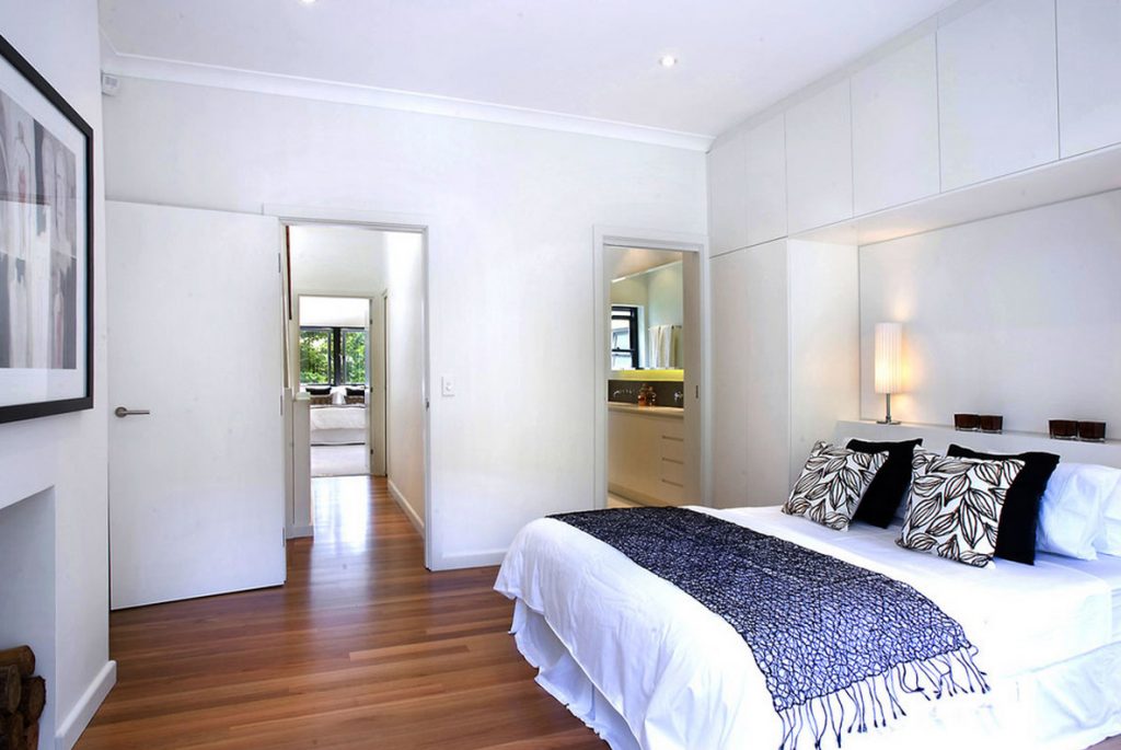Очень важно, чтобы к кровати были подходы с двух сторон (не менее полуметра), иначе утром будет невозможно ее заполнить или поставить прикроватные тумбочки. Если спальня очень узкая и настолько мала, что кровать — единственный предмет мебели, который может поместиться внутри, поместите ее в (самый дальний) угол