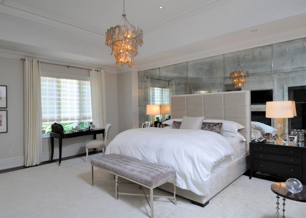 Зеркало поможет визуально расширить пространство спальни: поместите его на изголовье кровати (если нет окон), но не вешайте прямо перед кроватью (плохая примета). Психологи, астрологи и др. не рекомендуют вешать много зеркал в спальне, видеть друг друга во сне или каждый раз, когда вы встаете с постели. Зеркало находится на изголовье кровати или в другом конце комнаты.