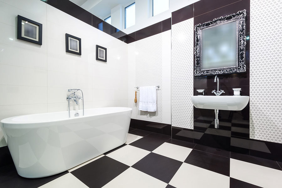 Презентабельно смотрится пол из черно-белой плитки, уложенной в шахматном порядке.