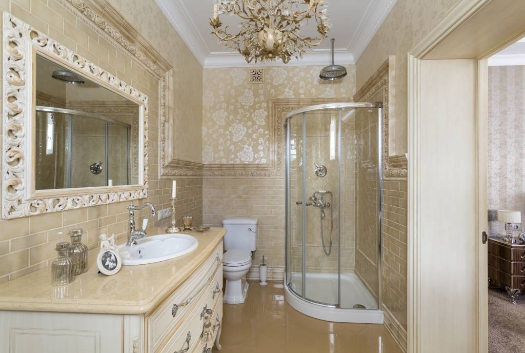 Как и положено классике, она стоит достаточно дорого, выглядит роскошно и сочетает в себе многовековой опыт дизайна. Центральным объектом здесь является сама ванна. Очень часто она располагается по центру, но это – не догма. Зачастую ванна расположена на специальном подиуме, которые может примыкать к стене, или, наоборот, располагаться в центре помещения.