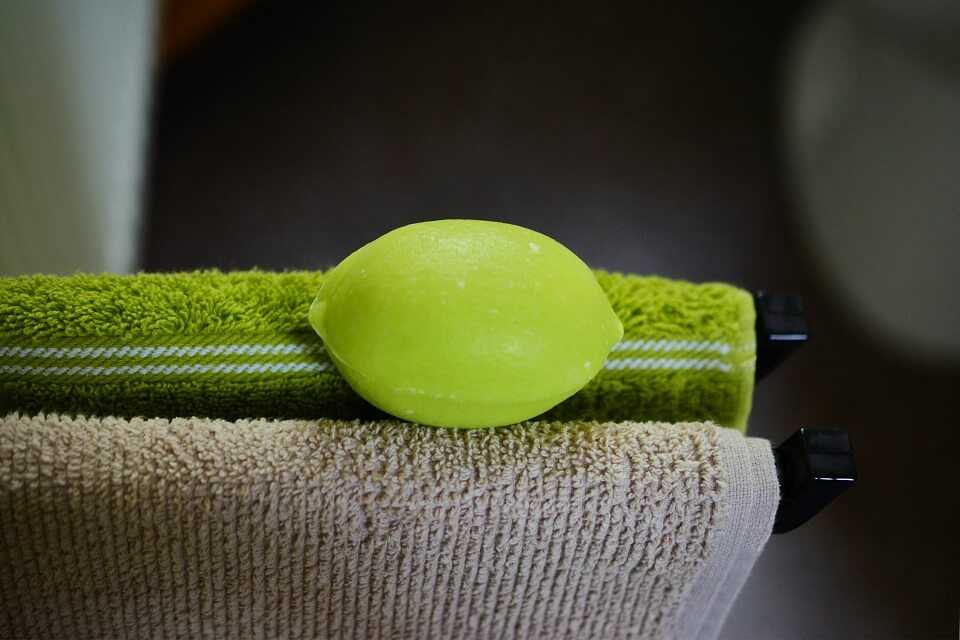 Зеленые детали придадут свежести. Мелкие детали должны быть более насыщенными, а крупные — приглушенного оттенка. Следующее фото демонстрирует контрастность между аксессуарами, используемыми в бежевой ванной комнате.