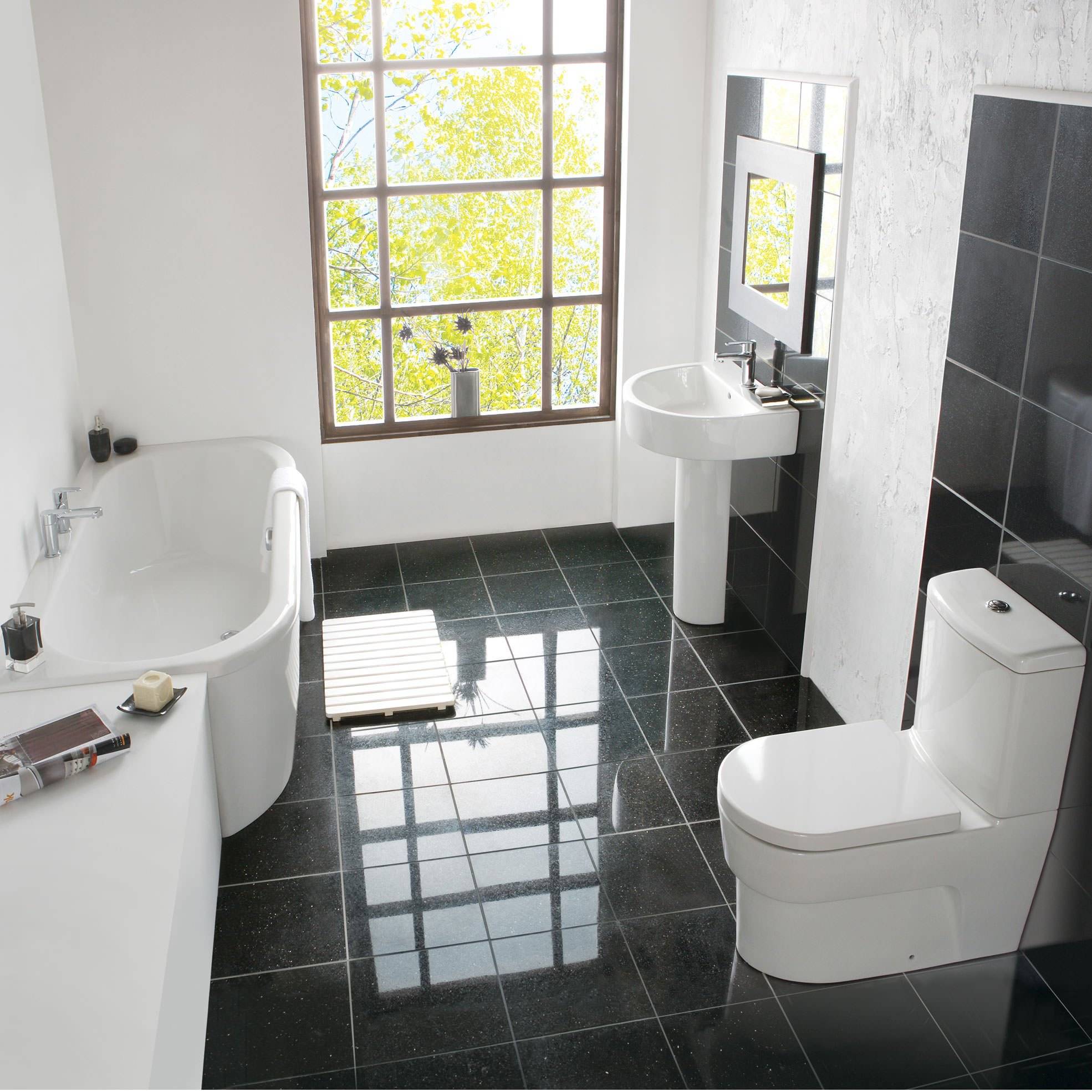 Черный также прекрасно сочетается. Однако для удачной композиции темного должно быть, как можно меньше. Например, черная сантехника среди светлых стен выглядит очень эффектно.