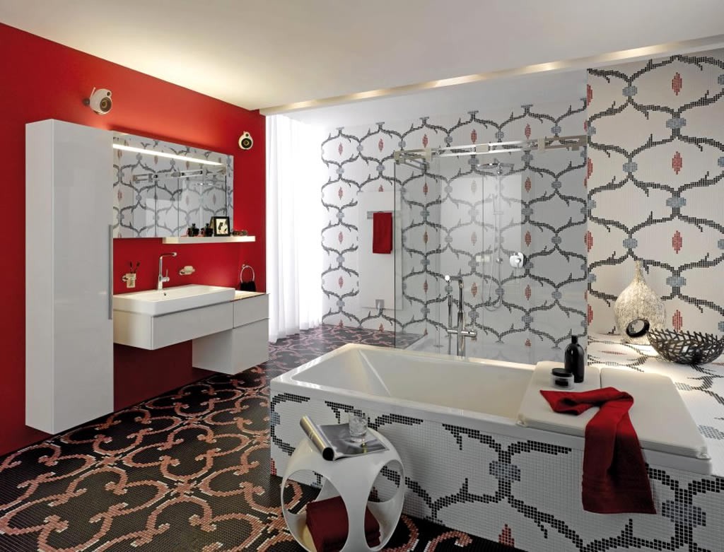 С яркими красками стоит обращаться осторожнее, не все они могут наполнить ванную комнату атмосферой уюта. Ошибочно люди сочетают красный и черный или белый.