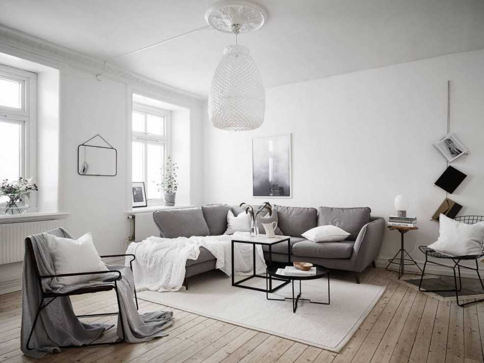 Картины прекрасно дополняют скандинавский интерьер гостиной