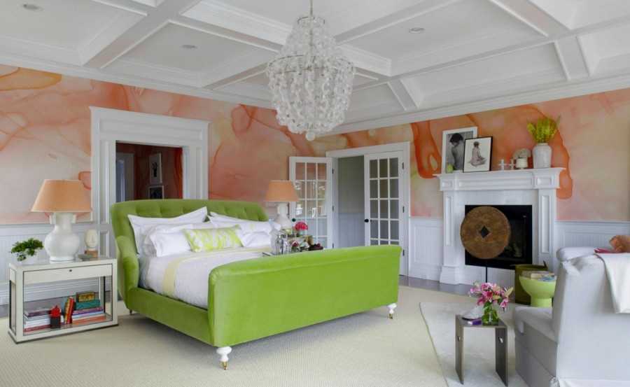Эффектно смотрится соединение дорогих элементов с дешевыми. Так, дорогими обоями можно оклеить акцентный участок комнаты, а остальные стены оформить под покраску флизелиновыми обоями. Элегантный интерьер создадут цвета: