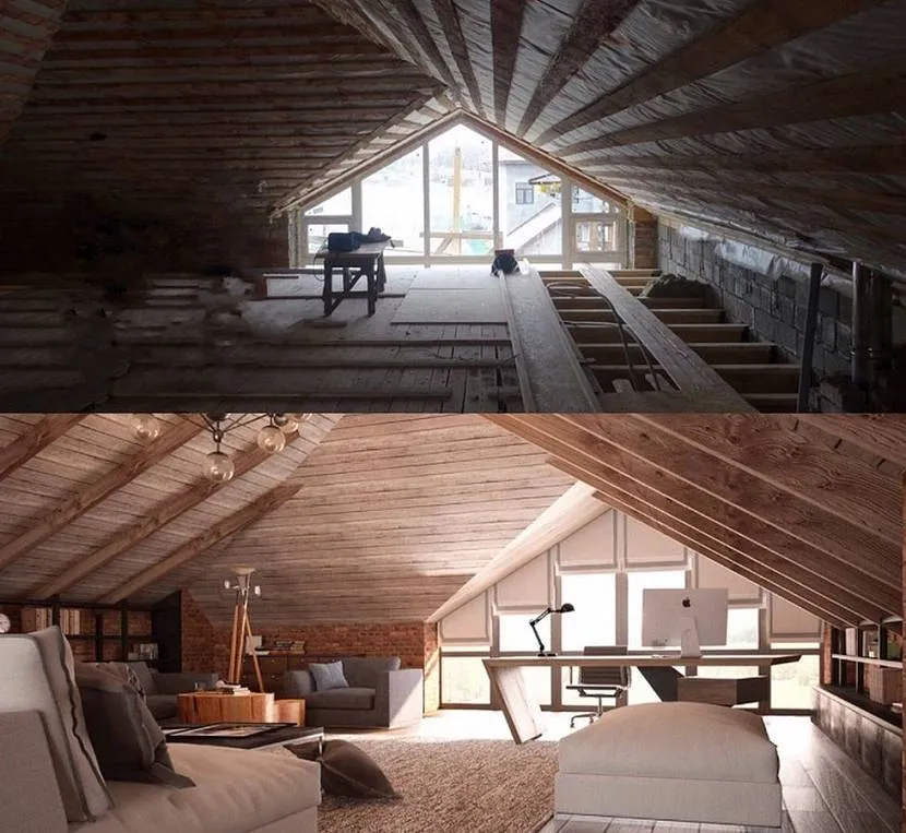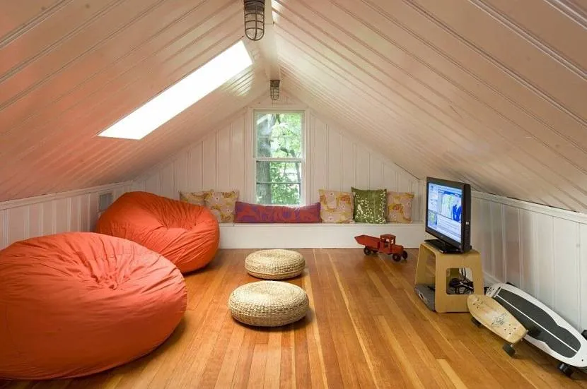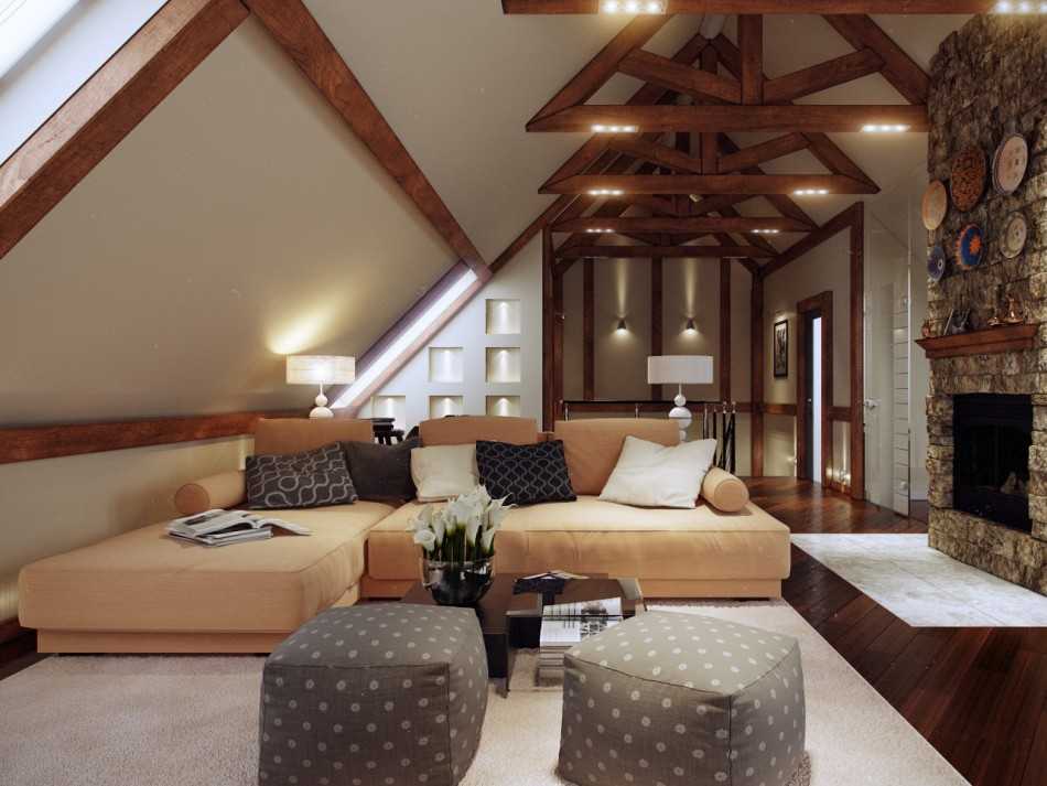 Чердак в этих строениях обустраивается под мастерскую, спальню или рабочий кабинет. Это особенно удобно сделать в изолированном помещении с достаточно низкими потолками.