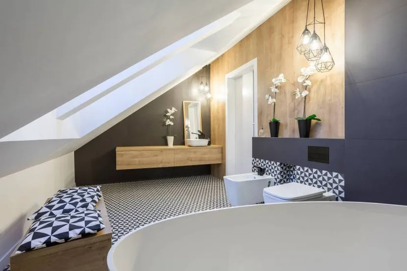 Ванная комната на мансардном этажеИсточник hzcdn.com