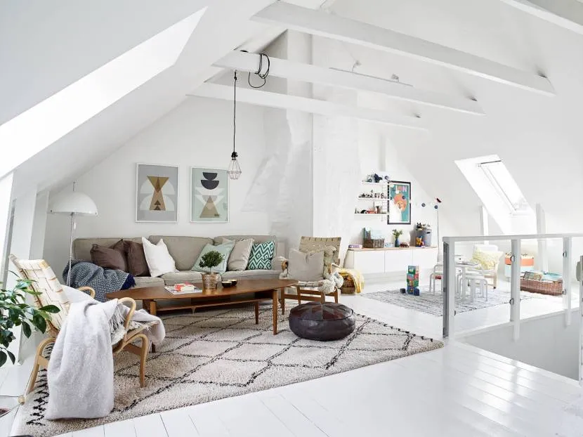 При планировании интерьера мансарды есть только одно существенное ограничение – это ее конфигурация с учетом скатов и расположения окон. Если помещение небольшое, выбирай минималистичные стили – они смотрятся легче и воздушнее. Если у тебя большая и просторная мансарда с высоким потолком – креативно и интересно выглядит лофт с открытыми балками и коммуникациями.