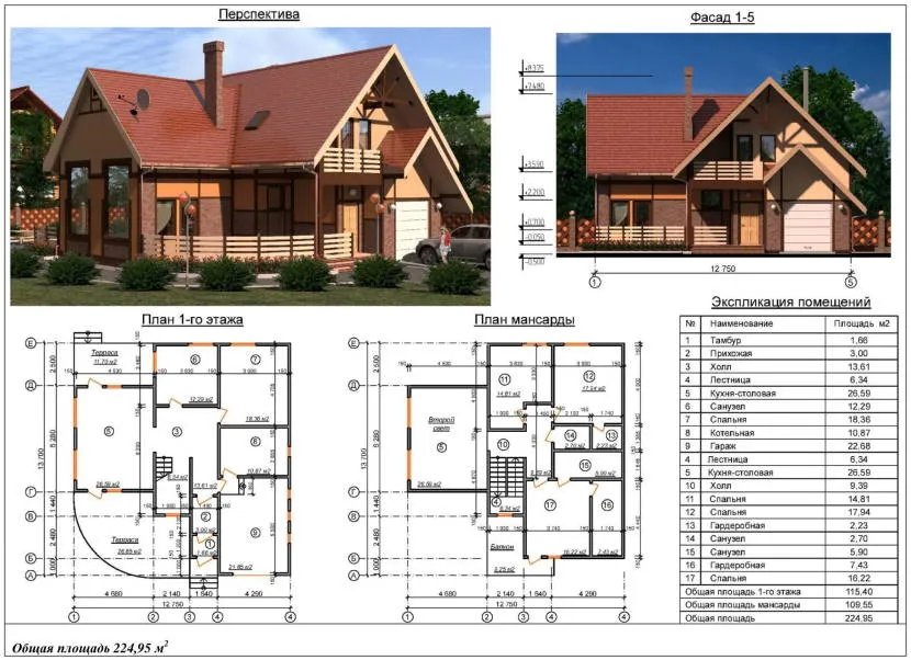 Особенности проектирования дома с гаражом и мансардой заключаются в следующем: