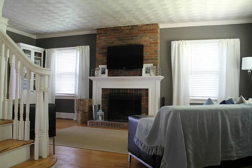 Угловой камин в гостиной с двумя окнамиИсточник www.croatianwine.org