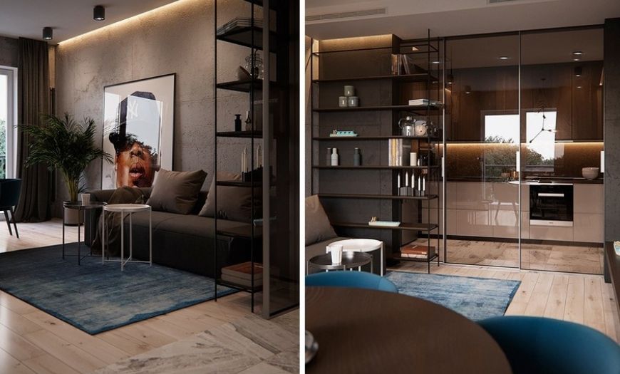 Такие тона используются в небольших квартирах осторожно и только в сочетании с основным светлым оттенком. Цвета не должны быть слишком насыщенными. Не подойдут яркие варианты темно-синего или фиолетового — вместо них стоит взять приглушенные и дымчатые