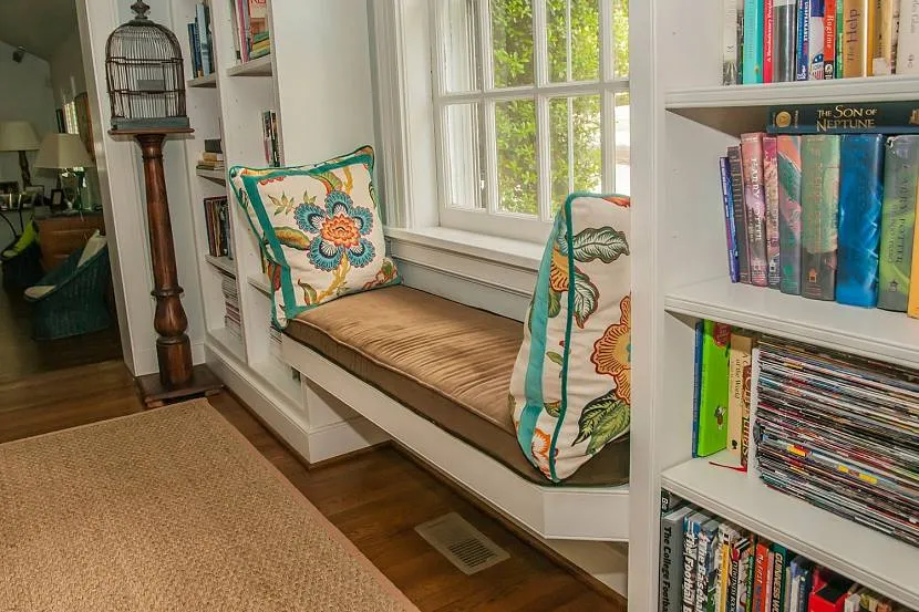 Если подоконники широкие, то их можно приспособить под место для чтения и отдыха. Там размещают мягкие подушки.