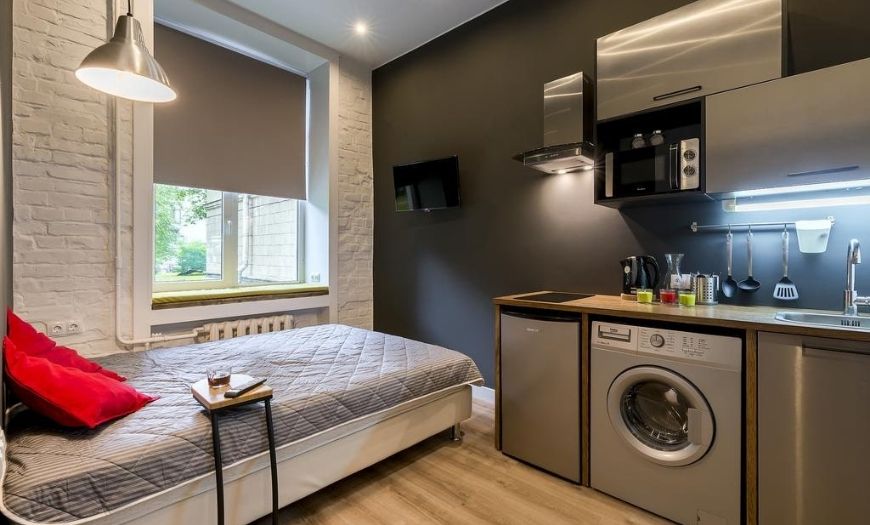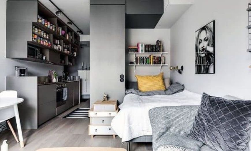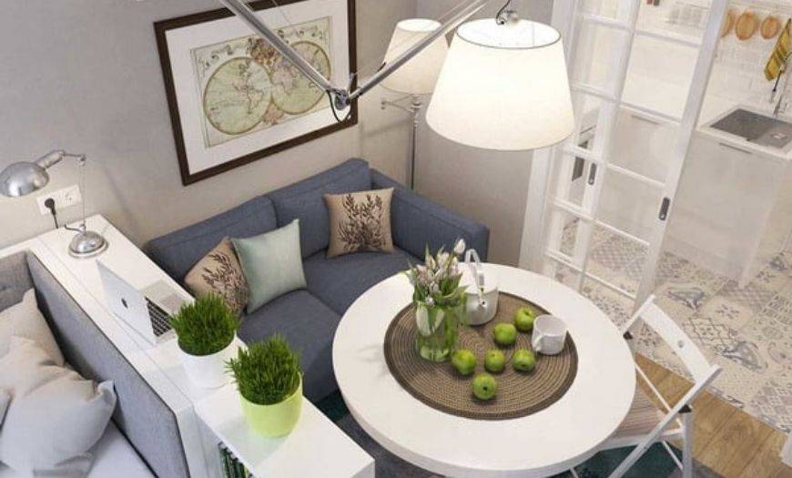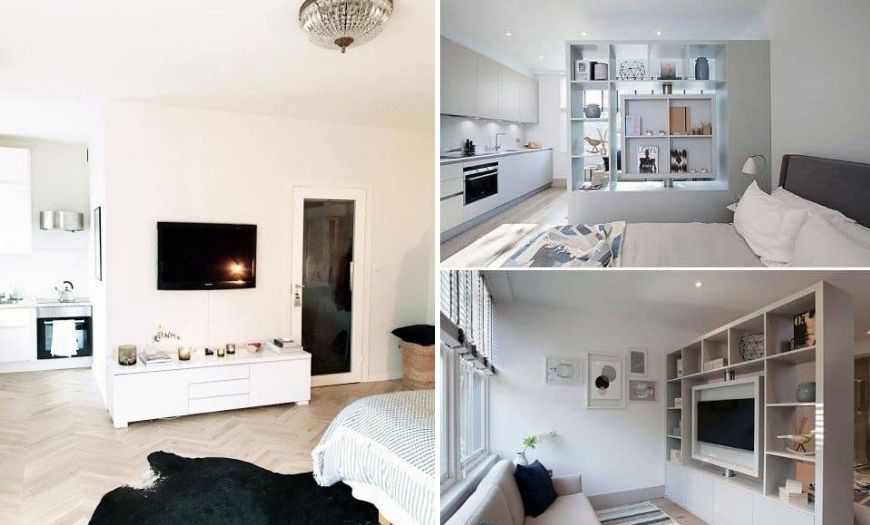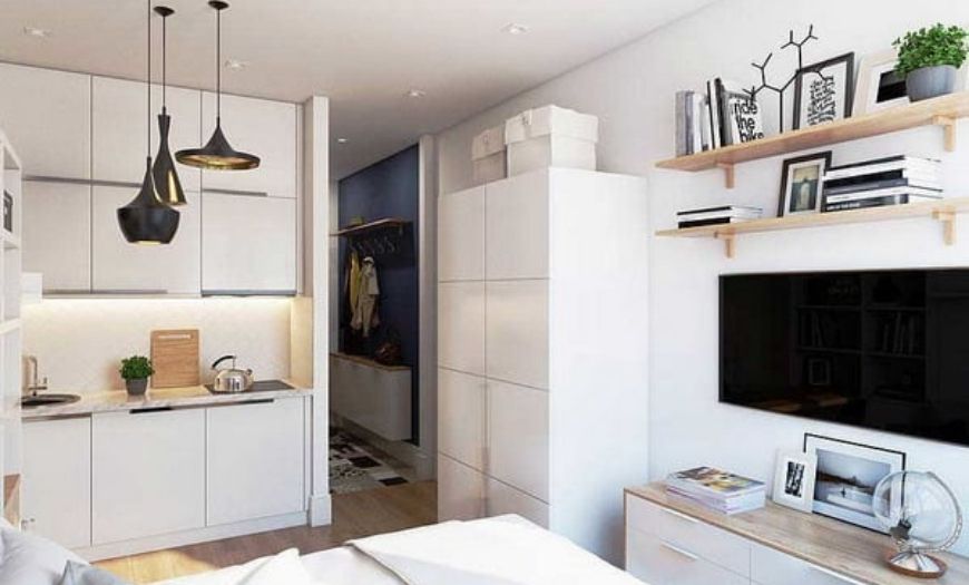 Классика в небольших квартирах-студиях — светлые оттенки. Среди популярных вариантов: