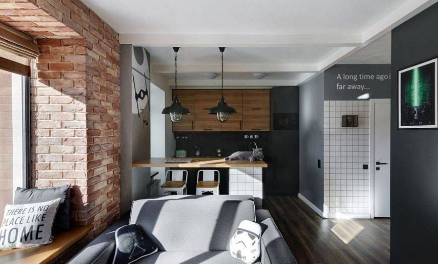 Неоштукатуренная кирпичная стена является неотъемлемым атрибутом стиля лофт