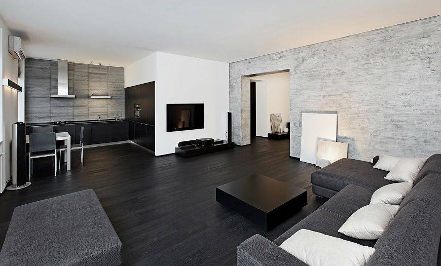Дизайн гостиной в стиле минимализм, хай-тек, лофт