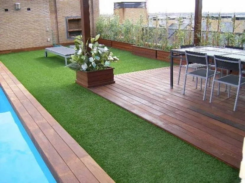 - чтобы дизайн сочетался с ландшафтом, выберите деревянный настил;