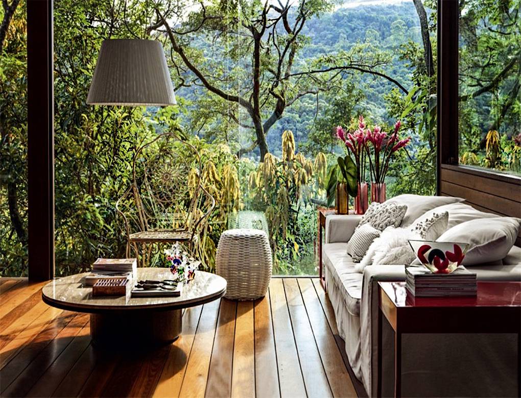 Если первоначально органическая архитектура предполагала использование только одного вида материала (камень или дерево), то сейчас чаще наблюдается сочетание лёгких конструкций и тяжелых, массивных объектов из фактурных необработанных материалов. Таким образом, пропадает необходимость в дополнительном декоре интерьера.