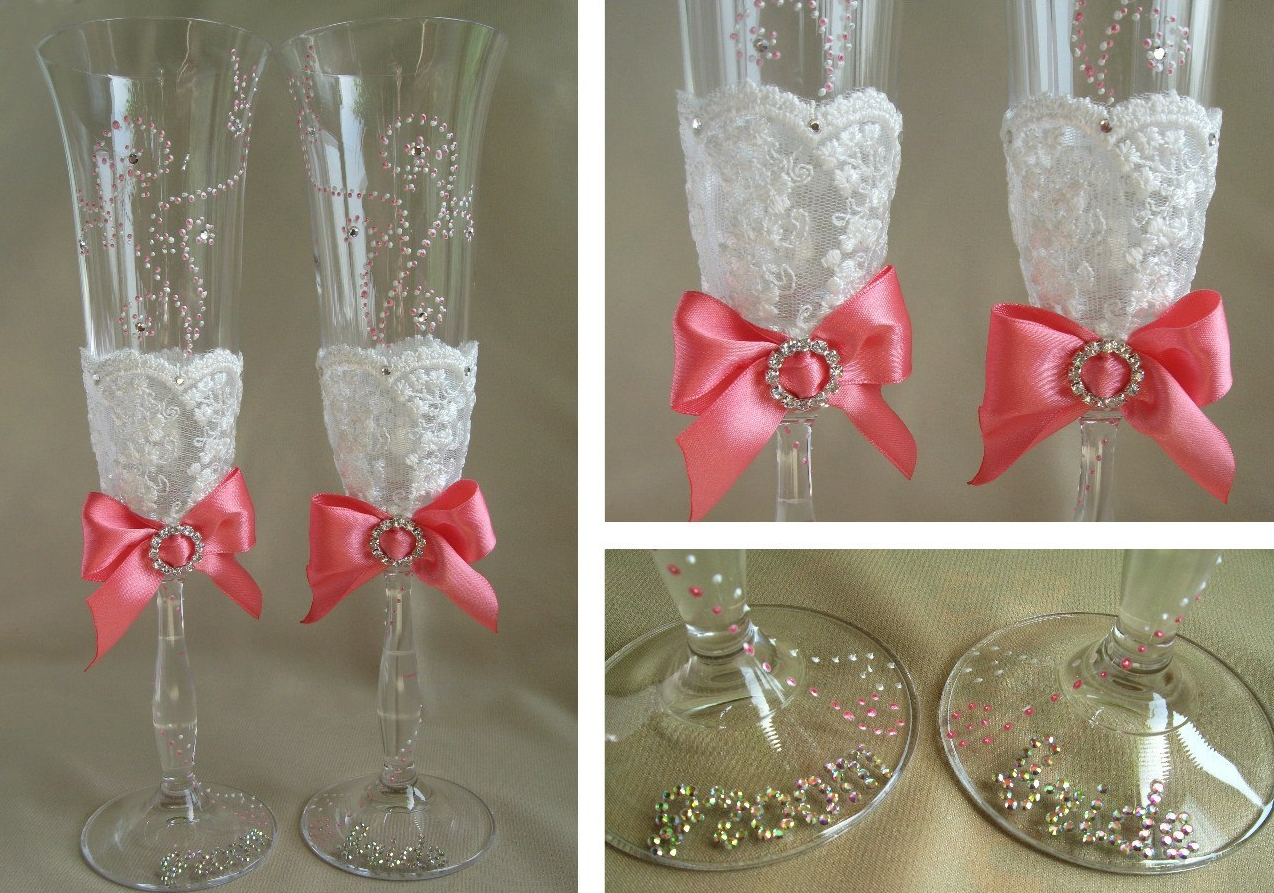 Найти пошаговое описание процесса украшения свадебных бокалов можно в интернете (на специализированных порталах, посвященных рукоделию).