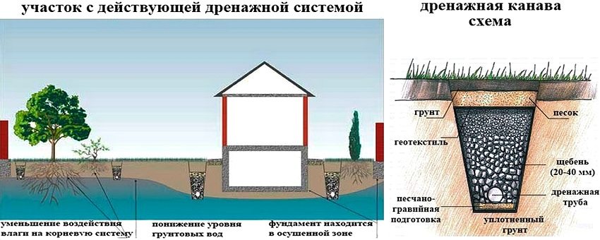 Главным назначением любой дренажной системы является осушение земельного участка путем удаления избытка влаги, которая образуется: