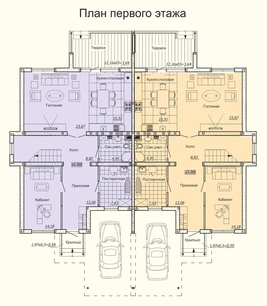 Что касается недостатков, то одним из негативных аспектов проживания в двухквартирном доме может быть шум из соседней части. Эту проблему можно решить на этапе планирования или по завершении строительства, используя специальный строительный материал с пустотами, который повышает звукоизоляцию. Кладовые и подсобные помещения вдоль смежной стены являются дополнительным барьером для распространения звука.