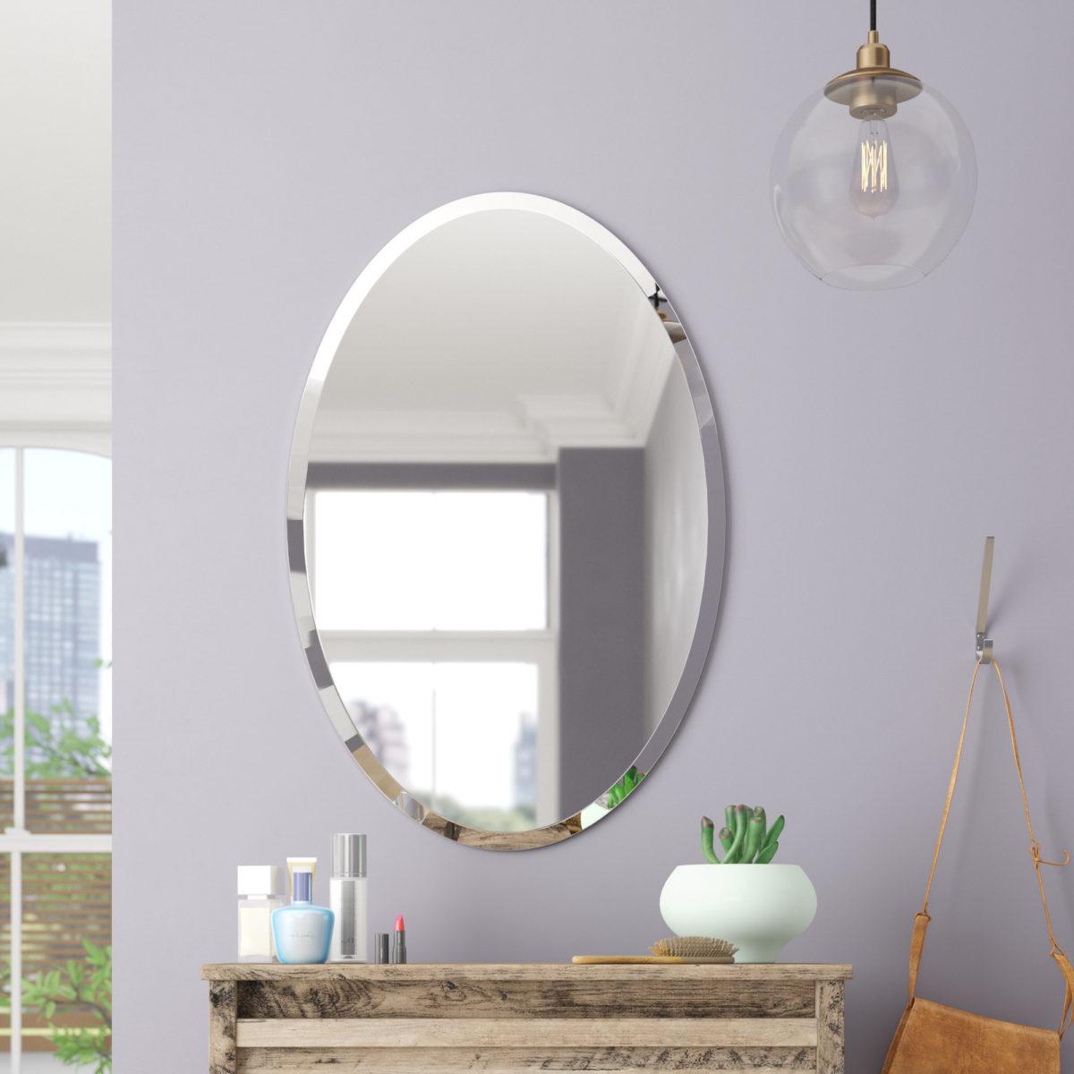 Овальная конфигурация сглаживает строгую геометрию помещения, предметов мебели, вносит гармонию в интерьер. Такое зеркало крепится вертикально или горизонтально в зависимости от наличия свободного места.
