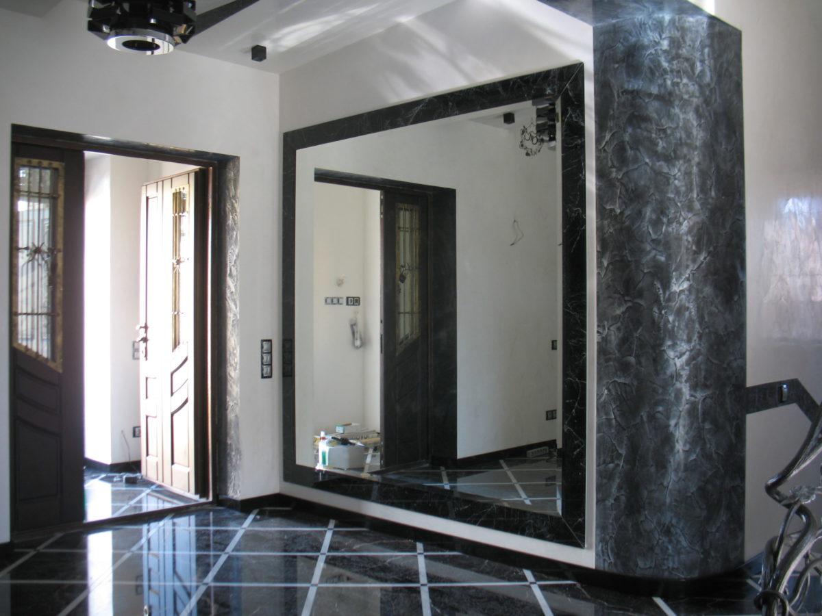 Входная дверь с зеркалом по отзывам приверженцев Фэн-шуй в интерьере лучше всего сочетается со следующими дизайнерскими решениями в прихожей: