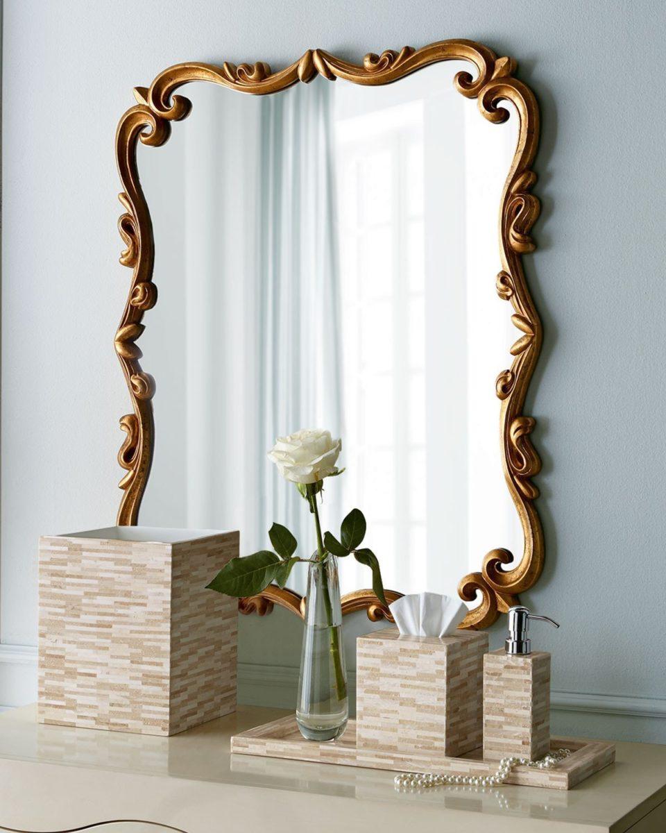 - обрамление. Лучше отказаться от неестественных цветов при выборе обрамления зеркала. Кроме того, стихии дерева и металла уравновесят воду, к которой относятся все материалы с отражающими поверхностями;
